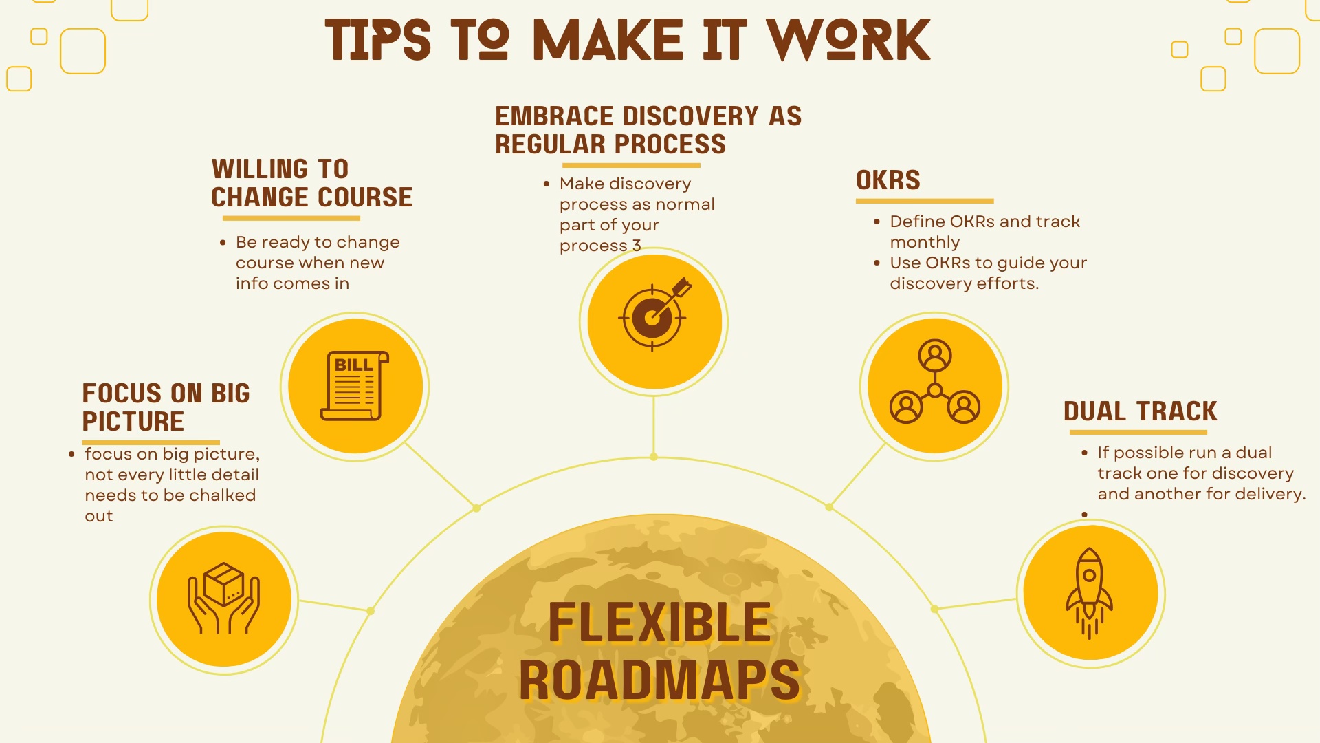 Embracing failures and being tactful about balancing roadmap with delivery and discovery items.